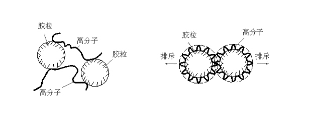①胶粒与不带电荷的高分子物质发生架桥,涉及范德华力、氢键、配位键等吸附力。