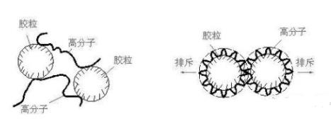 ③胶粒与带同号电荷的高分子物质发生架桥,“静电斑”作用